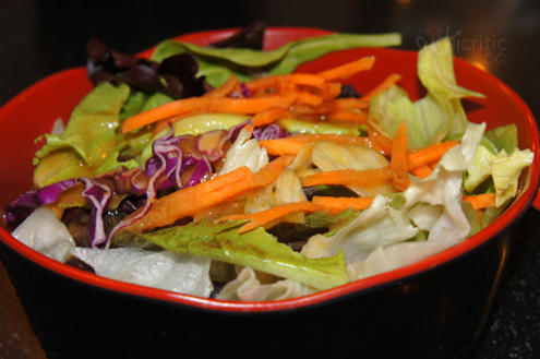 We start with Ginger Salad. The homemade dressing has a sweet, light taste. -