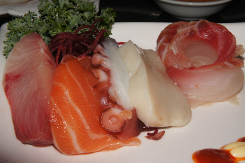 We also tried various sashimi like yellowtail, salmon, octopus, scallop and red snapper. All of the fish was very fresh and cut into large, thick slices. Out of these our favorites were the yellowtail and scallops. For those of you interested in the quality of fish, I can't help you sniff through the computer but you can take a closer look at their fish with nothing on it below. -