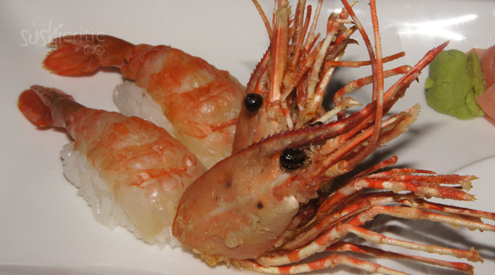 We are served sweet shrimp nigiri next, which was fresh. They say you can eat the insides of the octopus but LOOK before you eat -- then eat slowly. Mushy, slimy, fishy. We're not fans. -