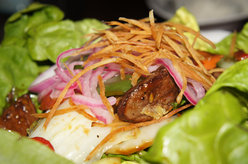 We try a dish from the other side of their menu, Ginger Beef. It is large strips of tenderloin, stir fried vegetables and crispy pieces of sweet potatoes. The dish is served in large pieces of butter lettuce and mixed with ginger and soya. The beef was well cooked, tender and savory. The vegetables are perfectly cooked, still a little crunchy and the onions and sweet potato pieces stand out. If you're not a sushi lover, this is a great pick. -