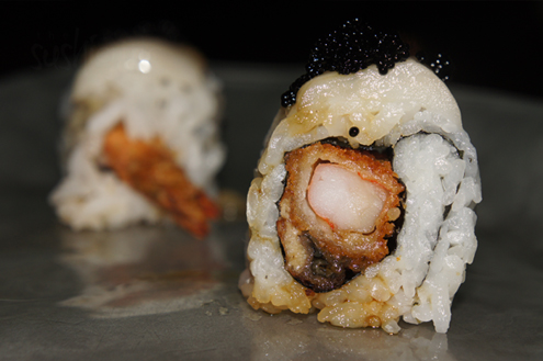 But we are sushi lovers, so its pack to some more rolls and fish for us. We are next served the White Tiger Roll. The roll is shrimp tempura and eel inside with escolar (white tuna) and eel sauce on top. The roll is crunchy and sweet, but a little lackluster as the shrimp overpowered the other fishes. -