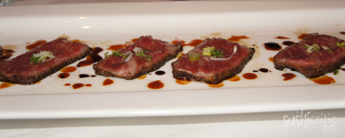 We were also treated to two beef dishes: Kobe beef Tataki and Wagyu Steak Frites. Both were so tender and bursting with flavor, it had us understanding why not everyone in the place was ordering sushi. -