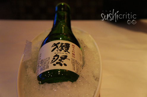 First things first. Chilled Sake (Dassai 50). When the ice melts, the server was quick to change it out. It was a house favorite and was ours as well.