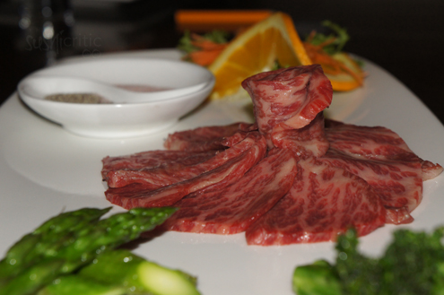 We were immediately blown away by our first dish, Kobe Ishiyaki. It was think slices of rare Kobe beef that you grilled tableside on an ishiyaki stone. The dish came with some broccoli and asparagus and salt and pepper so you can season your steak to your liking. This dish was bursting with flavor. The beef melts in the mouth and we loved cooking it just the way we like. It was the best beef we have had in a long time and as someone who only eats red meat on the rarest of occasions, I nearly wanted to be a full fledge carnivore again.