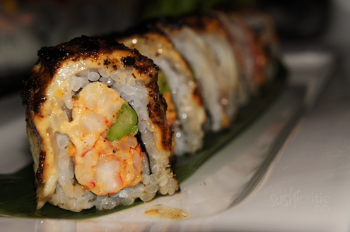 The last roll we had was the incredibly tasty Torchamaki. Inside was spicy crawfish and asparagus. It was topped with white fish and cajun mayo - then a torch was taken to the top of the roll. Just reading the description made our mouths water and the roll delivered. It was smoky from the torch and spicy from the fish mixed with the Cajun mayo. It was a little heavy, but very enjoyable. -