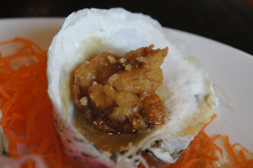 Sauteed Oysters arrive next. They hit the table and we are intoxicated by their scent. These oysters are breaded and pan fried. They are served with a wine butter garlic sauce. They are crispy and meaty. The sauce is delectable and you can really taste the garlic. We can see why this dish is a favorite and we highly recommend it. -