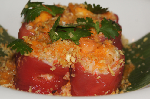 We try Tuna Carpaccio next. Carpaccio was originally a dish of thin beef seared with a mayo mustard sauce. It has since been given an Asian flare at many restaurants and served with different inspired sauces and spices. Our Carpaccio was Cajun seared tuna with a wasabi mayo. As with most Carpaccios, the fish was super fresh. It was well seasoned and the sauce was light and spicy. We generously use the fish to soak up the sauce. -