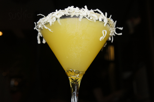 We also try the Cocotini, which was recommended by Vicki. The drink is coconut rum, white creme de coco and pineapple juice mixed together. White creme de coco is a coco flavored liqueur, clear in color and typically scented with vanilla. The entire drink is poured into a martini glass which is rimmed with lightly toasted coconut flakes. If a fan of coconut, you will love this drink. It is very rich and sweet, but the coconut flavor is amazing. The coconut on the rim is a nice touch and I have to restrain myself from drinking this one too quickly. -