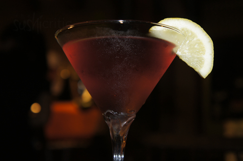 We start with a Lychitini and a Sake Flight Sampler. The Lychitini is slowly becoming a favorite cocktail of mine. Lychees are wonderful little fruits that originated in Southern China, where there are some lychee trees that have been around for 1000 years. The fruit has a red bumpy skin on the outside but the inside is white and has a grape like consistency, with a sweeter taste. The lychitini we have is light and refreshing. It has more a pink hue than others I have had and stronger citrus taste. Very good. -