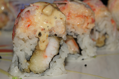 We venture on to the Magic Roll. The Magic Roll is shrimp tempura inside that has been topped with spicy kani, lobster salad and cajun spices. The roll has a nice spice to it, subtle and not overpowering. The kani salad has a great flavor as does the lobster salad and the two together are delicious. Kani salad is a mixture of shredded crab with mayo. If spicy, it has been mixed with some sriracha. Often times as an appetizer it is also mixed with mango, cucumber and some tempura flakes. This roll is quite enjoyable and though late in the night, we finish it. -