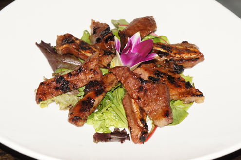 We are brought another steak dish, but this is very different from the previous one. This Grilled Steak can be found on the fusion section of their menu. The steak is first marinated for twenty-fours in a mixture of pear, apple and honey. The marinade is slightly sweet and makes for a very savory steak. It is the perfect time of year now for fruit marinades as they are light and many fruits are currently in season. The steak is slightly chewy and a little fatty, with small pieces of bone found in a few of the cuts. If a steak eater, I would highly recommend this dish. -