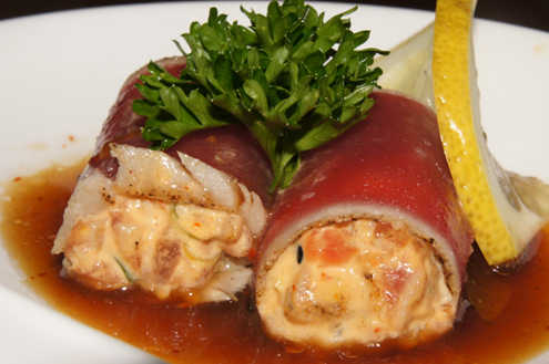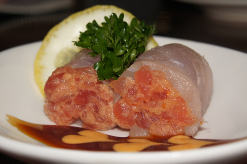 Michael preferred the Hirame Mono. This again had spicy tuna stuffed inside but was wrapped with fluke and served with eel sauce. This dish was soft and light like the Iron Tuna, but had a touch of sweetness. Fluke, Hirame in Japanese, is light and delicate, making it great for sashimi. -