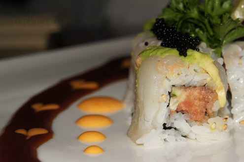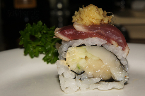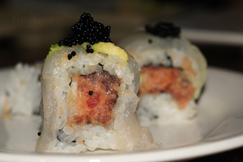 We decided to switch back to sushi and ordered three rolls. The first was the East-West Roll. We were intrigued by the ingredients - spicy white tuna and avocado inside with seared tuna and minced ginger on top. At first bite, the ginger is completely overwhelming. It masked the taste of all the fish and in our opinion it ruined the roll. Perhaps without it, or a different topping, the roll could be salvageable. -