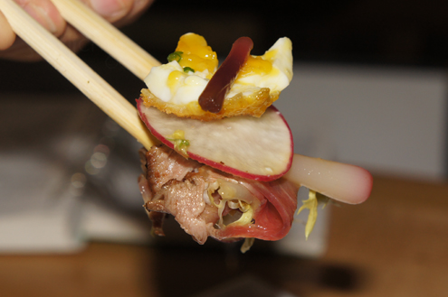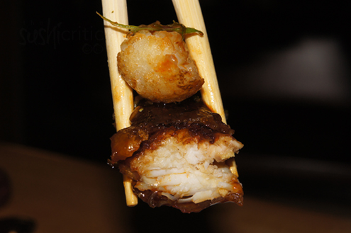 The Octopus is chewy, but softer when compared to other places that have served us this fish. At Sen their octopus is not pre cooked and they cook it with daikon, green tea and kelp. It is slightly juicy and has a flavor that comes across a little like ginger.