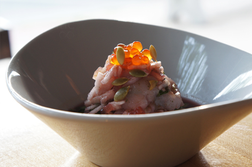 The Tuna Ceviche Sushi is incredibly tasty. The vegetables used in the ceviche are subtle in taste but add a nice crunch.